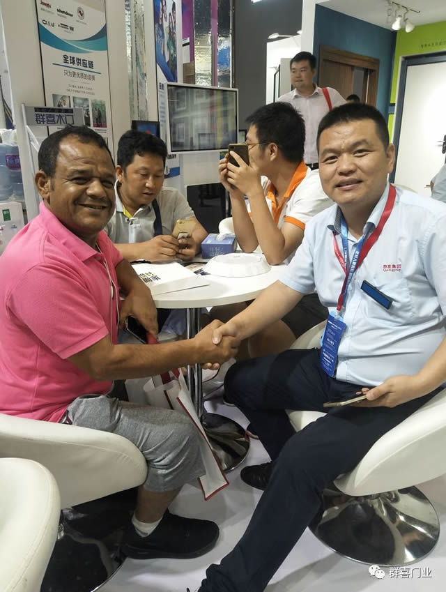 为满足客户对新品卖点的了解,现场工作人员耐心为每位客户进行细致的解释。展会期间,不断有新晋加盟商签订意向加盟协议加入群喜木门大家庭,为群喜木门全国市场版图增添了不少优秀的合作伙伴。