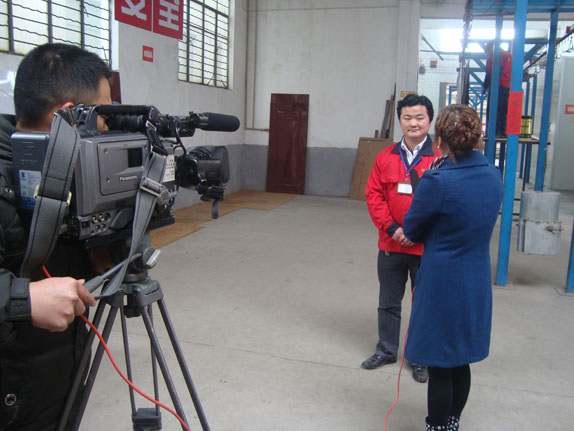 访和报道,公司总经理单总亲自对各项产品进行介绍,电视台采访人士对我公