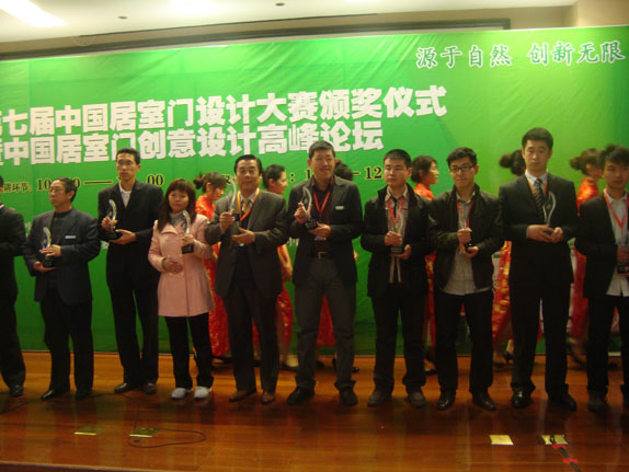 主题为“源于自然,创新无限”的第七届居室门设计大奖赛在第十届中国国际门业展览会开幕晚宴上举行颁奖仪式,公司倡导:安全无害,简约装修;珍惜能源,减少污染;公司开发以钢代木,钢木结合,最大限度杜绝木材浪费,保护树木,为此获得“我最喜爱的居室门设计大赛优化结构设计金奖”,这是社会对群喜公司的肯定更路上的动力。