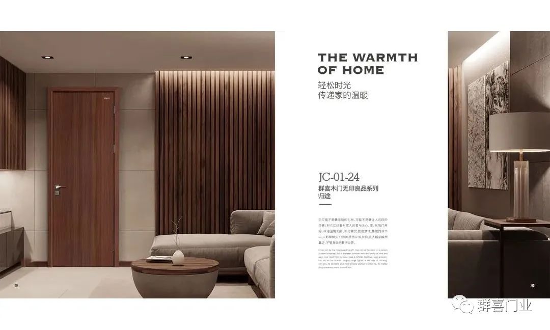 作为家的脸面,群喜木门产品的外观设计上也是在不断升级,可经典可时尚,可轻奢可极简,只为满足年轻人的审美挑剔,让每一次的搭配成为家的点睛之笔。