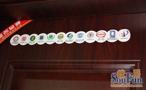 群喜展厅内的每扇钢木室内门上都贴有如此之多的环保认证