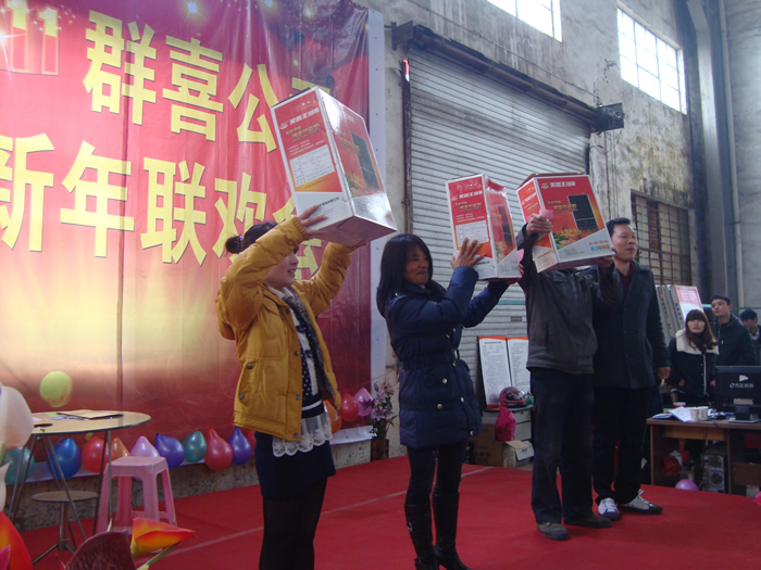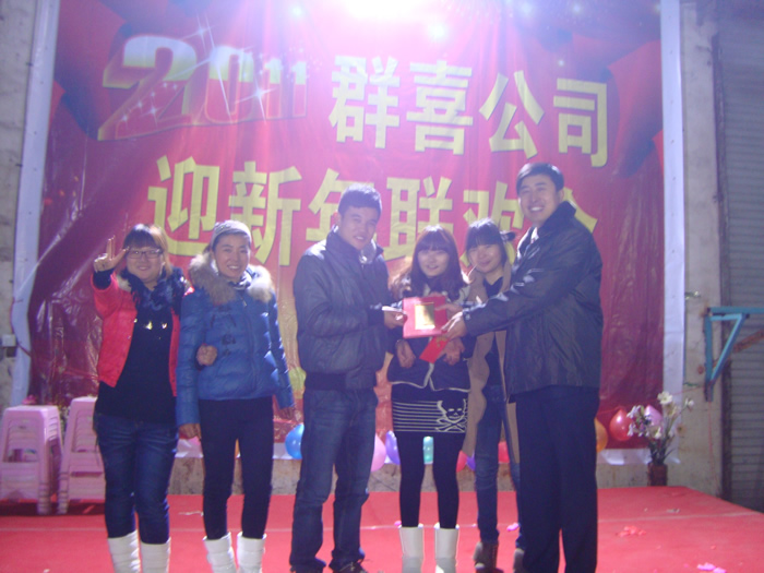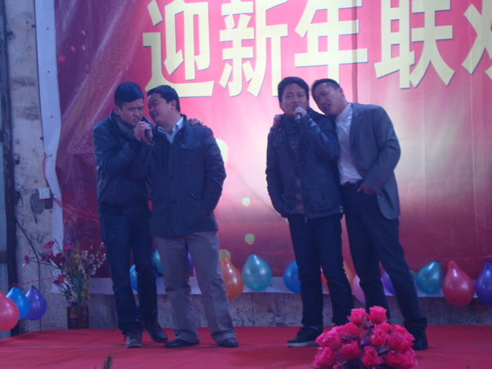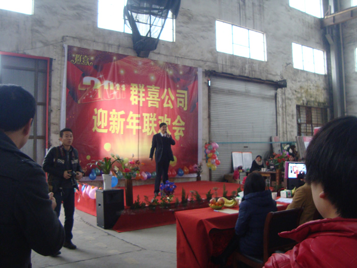 由于紧张的生产工作,我们抽出了一个下午的时间来进行此次的联欢会。一年中最放松的时刻也在此时,最开心的时刻也在此时。总共我们进行了40多个节目,豪迈的诗歌,激情的歌声,环保的时装秀,精典的笛奏,笑料百出的小品,还有双簧、舞蹈、相声、快板、大合唱等等,就节目类型都有了10几种。再加上2位自荐的主持人,整个场面一直在绵绵不断的进行着。节目一个接着一个。结果真是出乎意料,群喜公司真是人才辈出,出了这么多的节目,堪比上中央联欢晚会了。