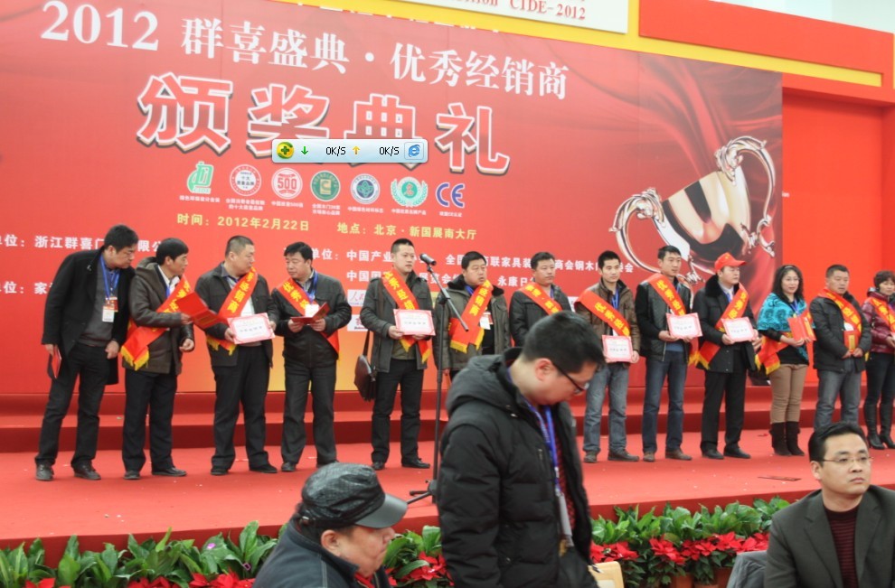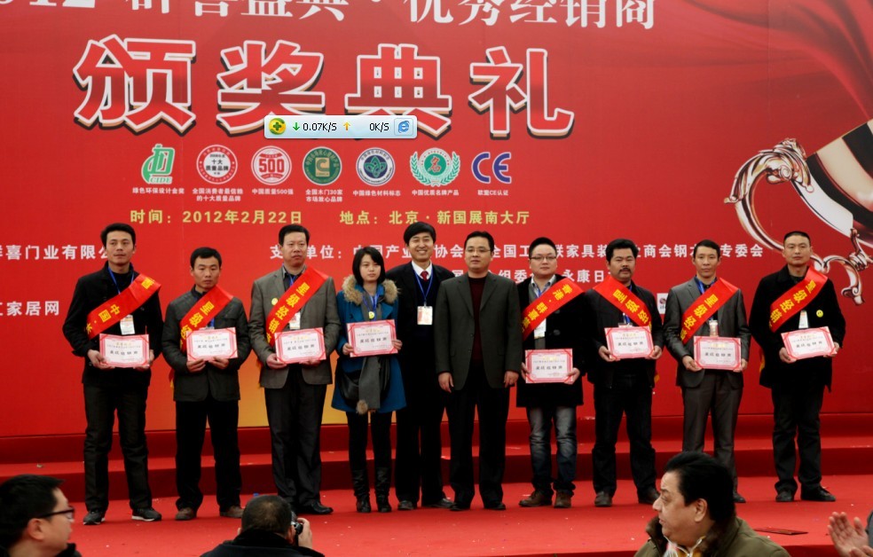 2月22日,第十一届中国国际门业展览会第二天,群喜门业召开的2012年长岭盛典·优秀经销商颁奖典礼,惹得全场一片沸腾,把展会气氛推向了高潮。在本次典礼上,公司送出了12辆汽车、30台苹果、联想电脑,30台数码相机,以及一系列厚礼来答谢广大经销商在2011年的辛苦付出,公司总经理单总发表讲话时说:“过去的一年中,在遭遇楼市寒流的不利条件下,广大经销商与公司同心同德,以积极的心态应对市场的变化,公司获得了逆市发展,经销商功不可没。”