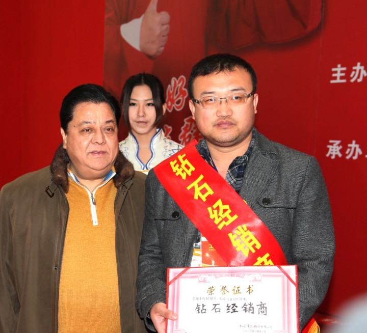 颁奖开幕式上李金斗大师致辞 李金斗大师和山东济南总代理王志强合影