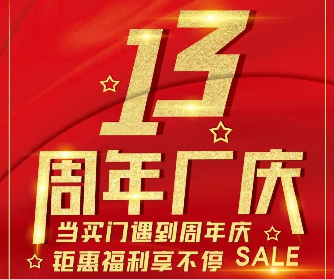 当买门遇到周年庆,钜惠福利享不停。13年坚持,13年专注,只为让您家美的更安心。