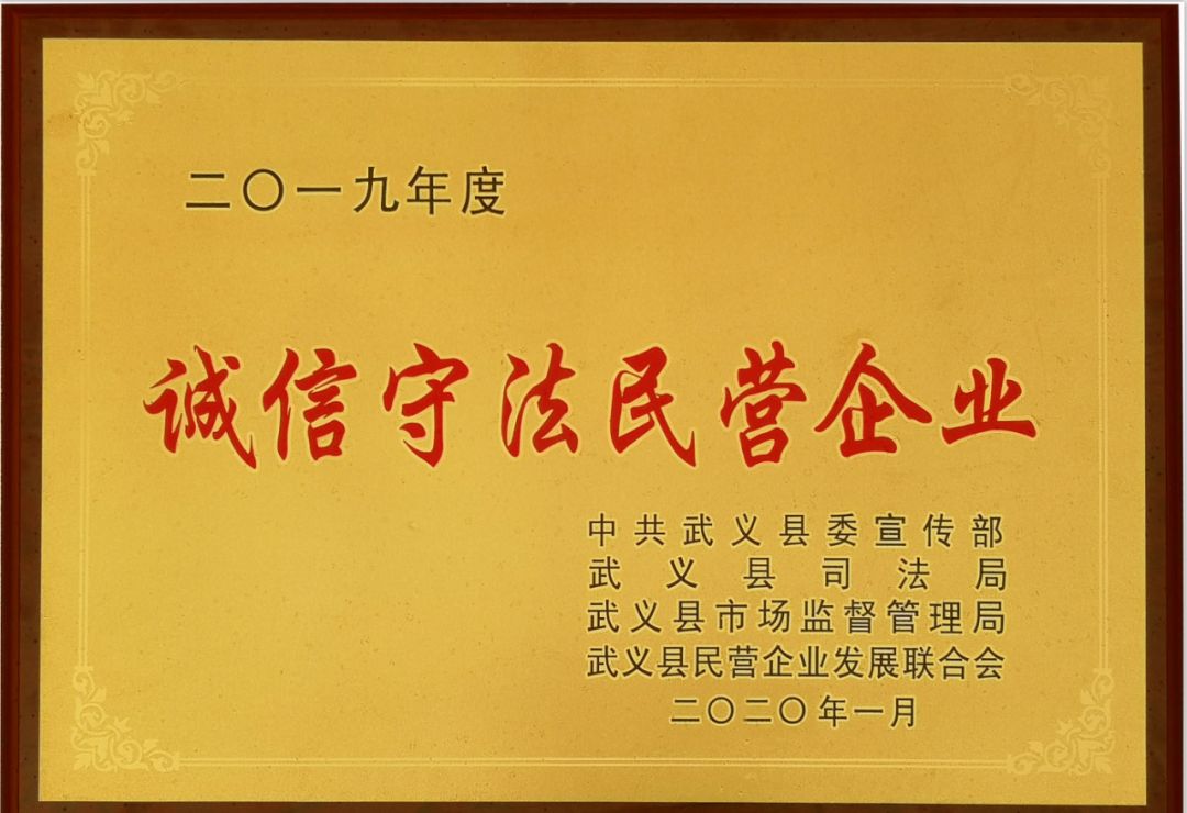 群喜门业荣获2019年度“诚信守法民营企业”荣誉称号。