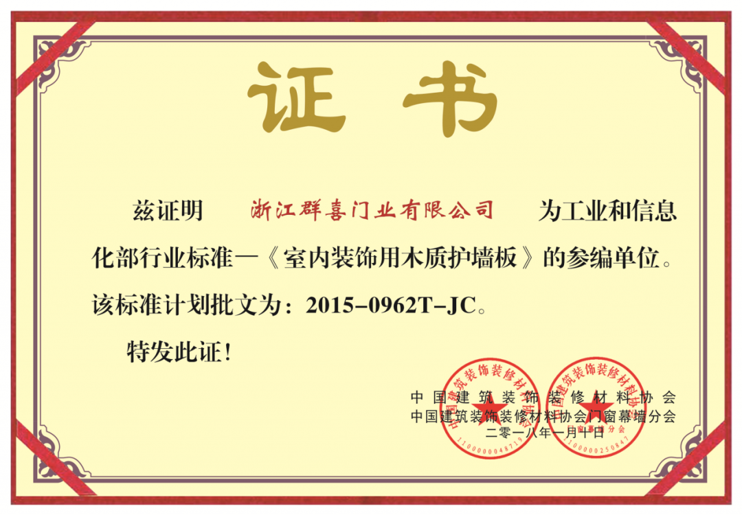 群喜木门作为参编单位之一出席《室内装饰用木质护墙板》行业标准审查会。