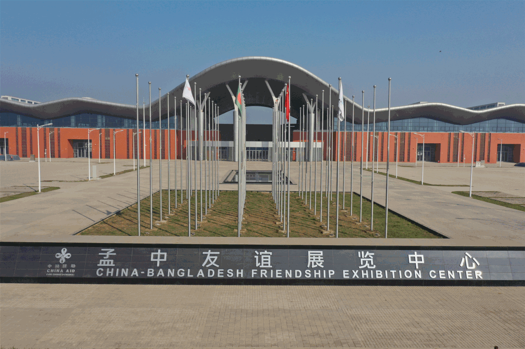 援孟加拉国孟中友谊展览中心位于孟加拉国首都达卡,项目包括一栋展示中心、一栋开敞式停车库、一个设备配套机房、两个门卫室及礼仪广场、室外停车场等。项目建筑用地总面积8公顷,总建筑面积33000平方米。主体红色的陶板外墙,铝灰色的波浪形大屋顶,象征着中孟友谊之船、贸易之船。项目投入使用后将有效缓解孟加拉国,特别是首都达卡地区承办大型国际会展会议的压力,也为项目所处区域发展提供新的机遇。