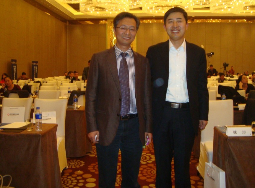 浙江群喜门业总经理单泽喜作为中国门都---永康门业企业的代表参加了此次会议,并和浙江经视主持人舒中胜,浙江大学管理学院院长吴晓波合影留念。