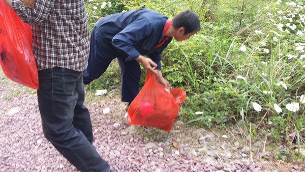动动手保环境,弯弯腰保环境。 一个垃圾也不能放过