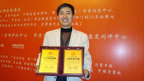11月8日,在全国政协大礼堂举办的2008年度中国质量品牌大型消费者公益调查中,永康市群喜门业有限公司喜获“十大质量品牌”“中国质量500强”,群喜公司总经理单泽喜上台领奖,并接受中央电视台记者的采访。