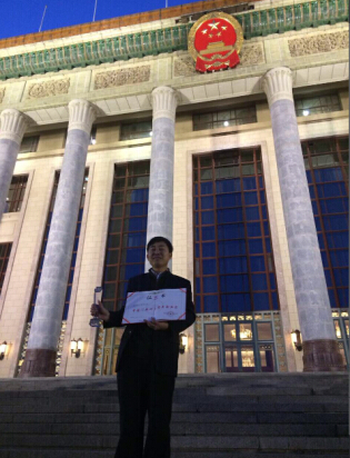 群喜门业总经理单泽喜在人民大会堂前合影留念