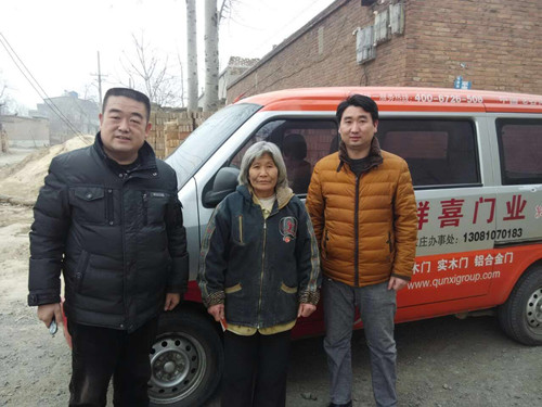 提着满满的几桶食用油和米面,群喜门业石家庄办事处的杨经理和栾城区经销商张经理走进了鲁家庄村张大娘的家。