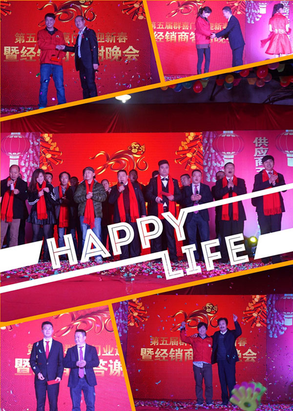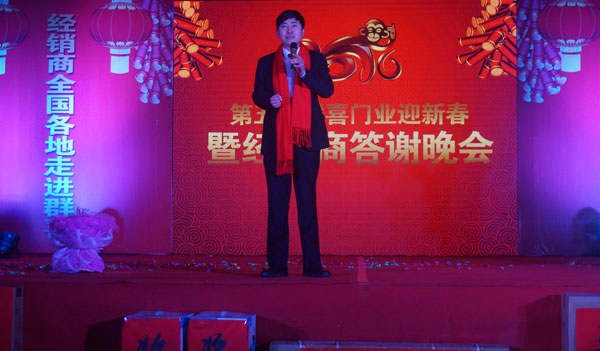 元旦过后第六天,群喜门业 中国门都室内门生产基地张灯结彩、热闹非凡,来自全国各地的近百名经销商和群喜门业 别墅门、钢木室内门、韩式木门几大基地的全体员工们一起举行了年度联欢会 ,同时在会上正式宣告群喜门业真情100分服务战略。