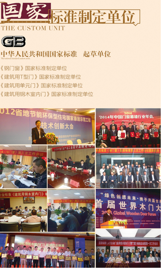 2013年,群喜别墅门的诞生,又一次将群喜门业推向行业的巅峰!借助对国家标准的起草,在行业内率先对《防盗安全门》、《钢门窗》、《钢木门》、《建筑用T型门》根据国家标准甚至是高于国家标准执行。群喜别墅门,不光光是市面上所指的非标大门,锌合金定制门。