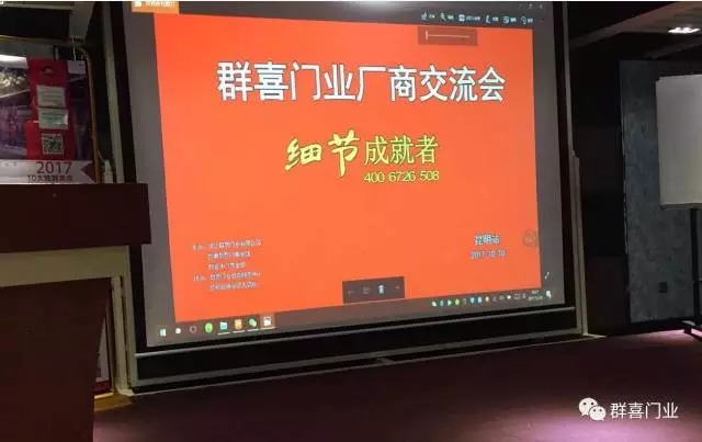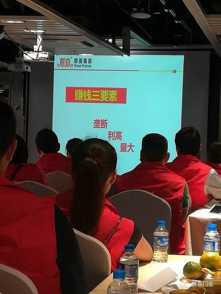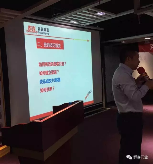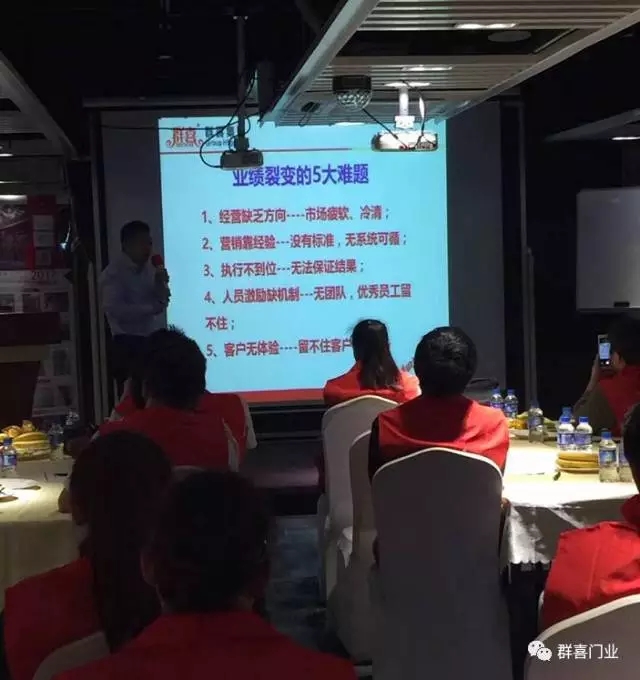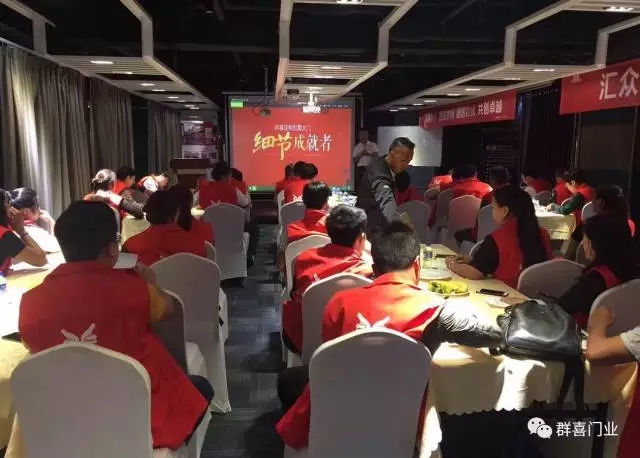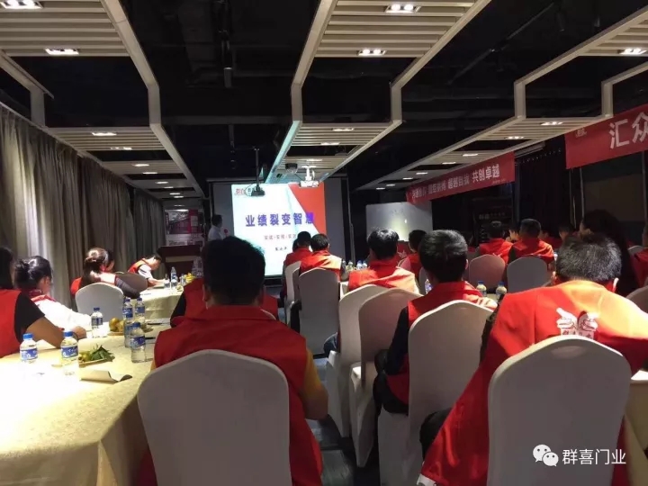 本次培训围绕在《终端经营困难突破》,分别从如何成交、如何业绩裂变及营销技巧等角度来阐述,通过全面的讲解及阐述帮助经销商建立系统化的营销思维,深得学员的认可! 培训会现场 每一次的努力,都是为了更好的成长。了解更多终端销售话术和知识,对于线下的经销商来说,具有重要的作用。我们希望,通过群喜门业和经销商们的紧密合作,让彼此都能从中获得巨大的收获。 群喜门业,愿和大家一起成长 再次庆祝培训会圆满幕!.jpg)