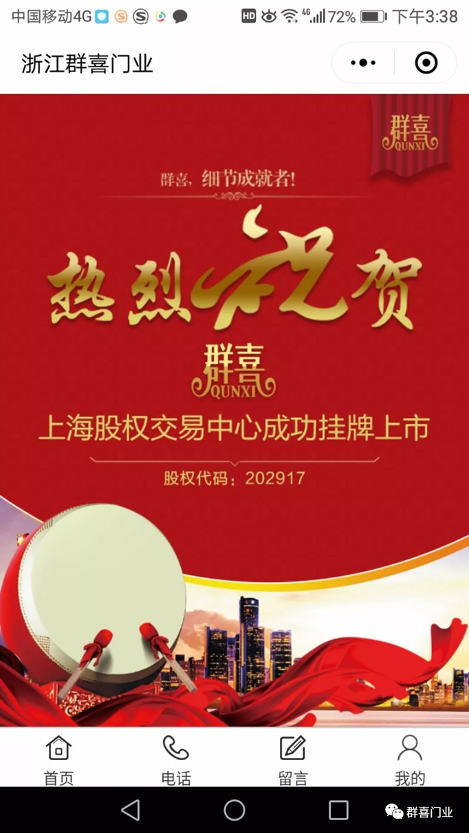喜文化:群喜通过全心全意为消费者提供性价比更优的室内门,希望给众多家庭带去喜事、喜庆、喜气,让消费者有更好的选择,让家的喜事更多一点