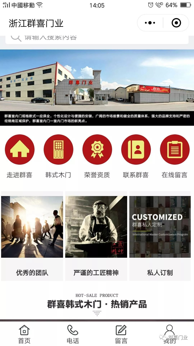 群喜门业是全国工商联钢木门专委会副会长单位,中国木材流通协会木门专委会常务理事单位,是4项国家行业标准主要起草单位,中国建筑金属结构协会会员单位,先后荣获“全国钢木门十强示范企业”,“全国钢木室内门十大品牌”,“浙商最具投资潜力企业”“质量诚信标杆企业”“售后服务标杆企业”等荣誉,并通过北京康居产品认证,ISO9001:2008国际质量管理体系认证、欧盟CE认证等权威认证。严格执行ISO14001环境体系认证,始终遵循“创新、规范、奉献、和谐”的经营理念,公司实行“喜文化”,推出“真情100”服务体系,引领了整个门业行业的发展。并致力于继承中国门庭艺术之精髓,融合国外门业技术之要义,结合市场需求推出新型产品,摆脱了传统木门对木材的依赖和受木材价格的左右,既环保又经济,是未来木质门业的发展趋势。产品广泛应用于宾馆、酒店、居家、政府工程、工厂、学校等各类商务建筑。畅销全国各地、并出口俄罗斯、澳大利亚、意大利、罗马尼亚等国家和地区。